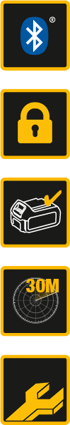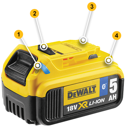 Bluetooth 4.0 Lavenergi-teknologi til driftsikker forbindelse til et DEWALT-batteri